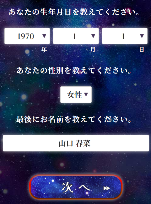 ②生年月日・性別・名前を入力して